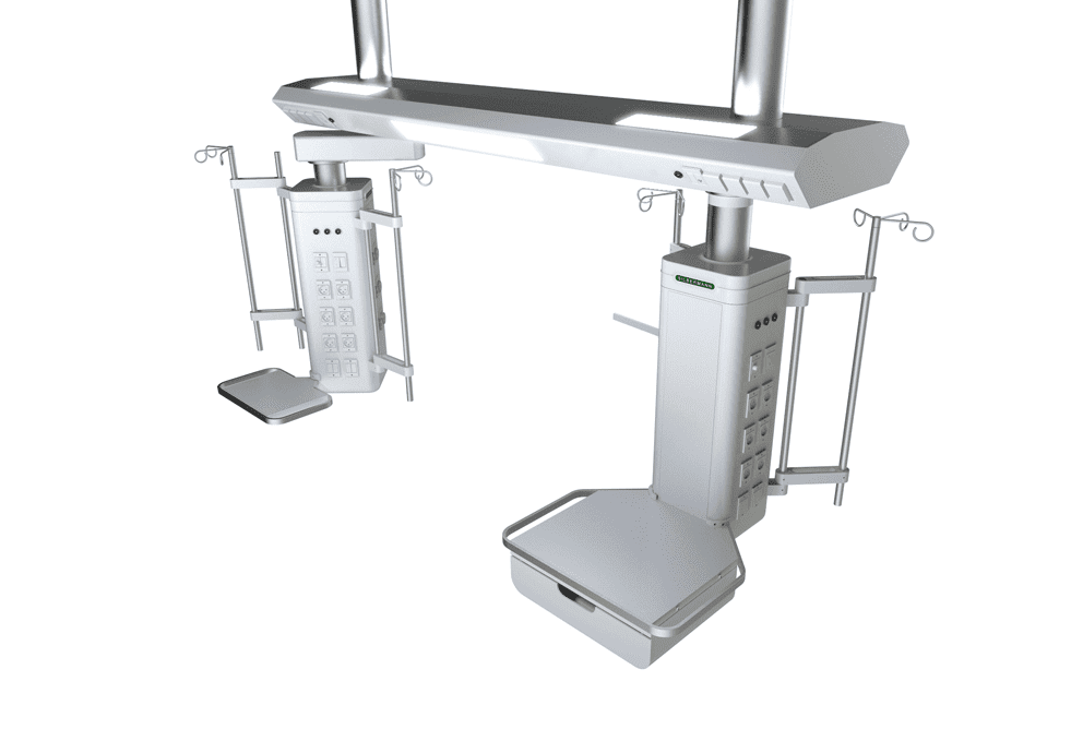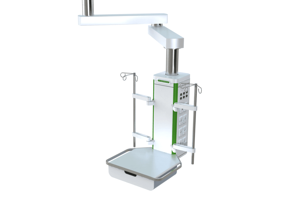 Благодаря специально разработанным крепежам и адаптерам, могут быть оптимально подвешены один или два плоских экрана для использования медицинских или хирургических целях.
