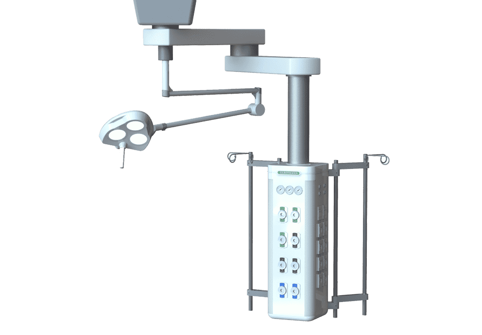 Консоль потолочная поворотная одно-плечевая для эндоскопических операций разработана так, чтобы быть гибкой и соответствовать различным конфигурациям в зависимости от требований к пространству, функции и назначения.